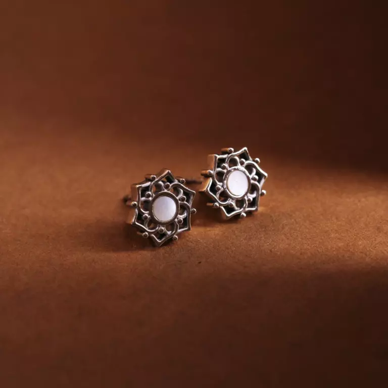 Composition Ohrringe Weissesperlmutt Silber