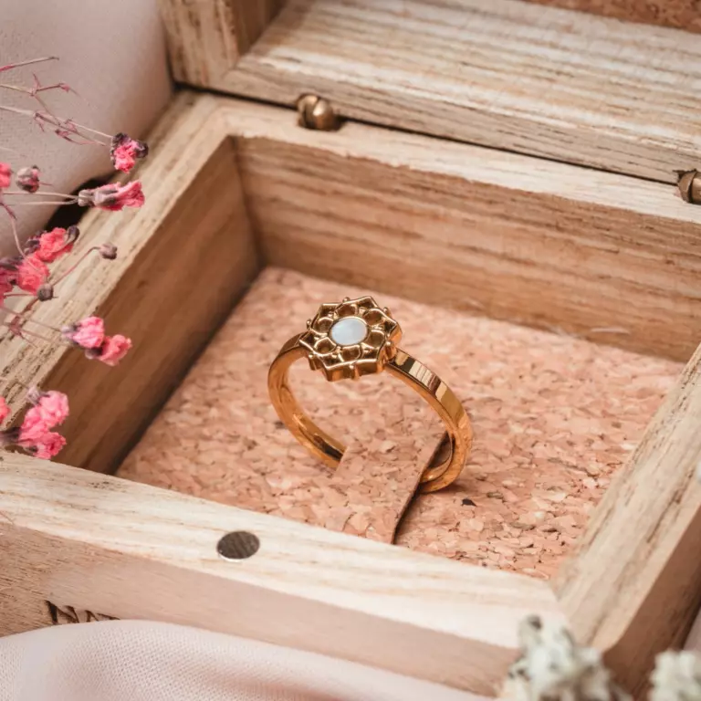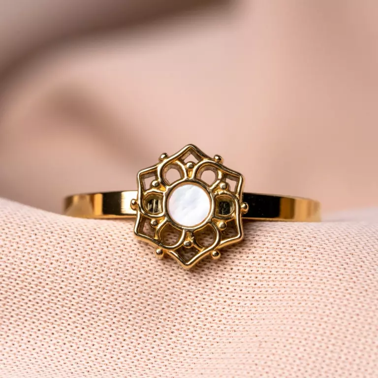 Ring Composition Weisses Perlmutt Gold